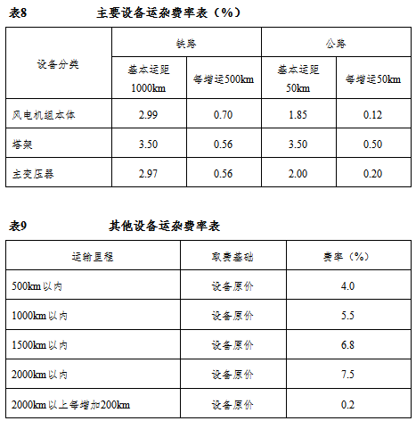 当机组采购设备清单中列出备品备件的明细项目时,需按备品备件各自的单价计算,不作为计算基数再按上述标准另外计算。当扩建工程风电机组与上期工程类型不同时,备品备件购置费率按新建工程计算。