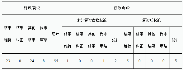 注:上述统计中,基于相同事实理由提起的行政复议或行政诉讼、行政复议机关或人民法院决定合并审理的,按照1件计算。